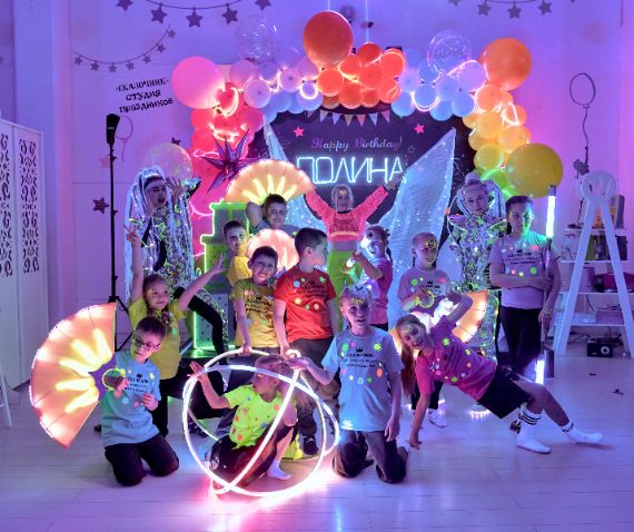 Стоимость программы: праздник под ключ, с 2 аниматорами, с фотозоной неонового имени= 135 000 рублей